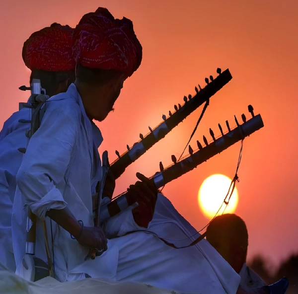 Morning visit to the stunning Patwon Ki Haveli and Salim Singh Ki Haveli — extraordinary merchant mansions carved entirely in golden sandstone with astonishing detail. Afternoon drive to the legendary Sam Sand Dunes — the largest and most spectacular dunes in the Thar Desert. Enjoy a camel ride into the dunes at sunset, followed by a magical desert camp evening with folk music, dance, bonfire, and a night sky full of stars. Optional overnight desert camp stay.
