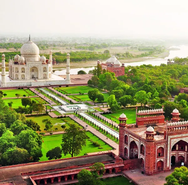 Arrive at the Taj Mahal — the world's most celebrated symbol of love, built by Emperor Shah Jahan for his beloved Mumtaz Mahal. Walk through the grand Darwaza-i-Rauza gate and take in your first breathtaking view of the white marble dome. Explore the main mausoleum, the reflecting pool, the mosque, and the perfectly manicured gardens. Your expert guide will share the full history, architecture, and legends of this eternal wonder.