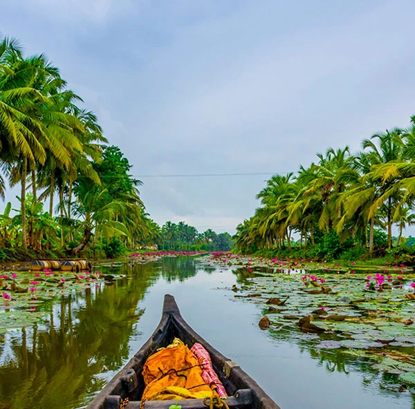 Cruise through serene backwater canals, paddy fields, and